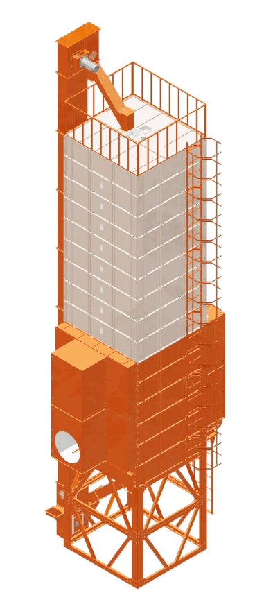 采用多層角狀盒進風/出風,薄層結構,布風均勻、干燥介質穿透性好、干燥均勻等優點;通風角狀結構保證干燥循環過程無死角、均勻、易清掃、防止糧食混雜;采用溜管式設計導糧,代替傳統上下攪龍結構,巧妙運用谷物的流動性,取締橫向運輸,降低破損。